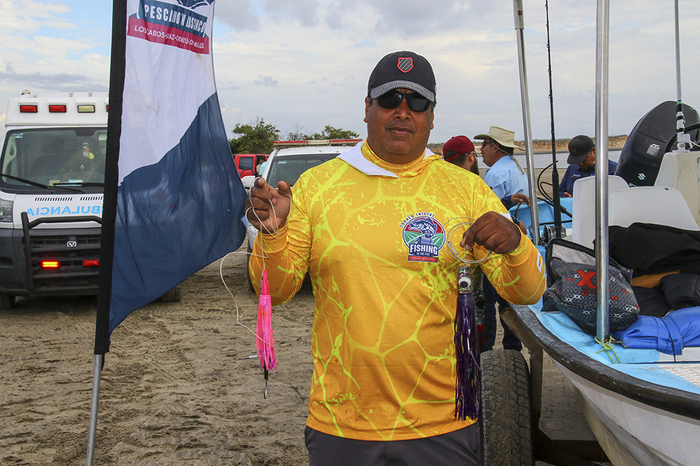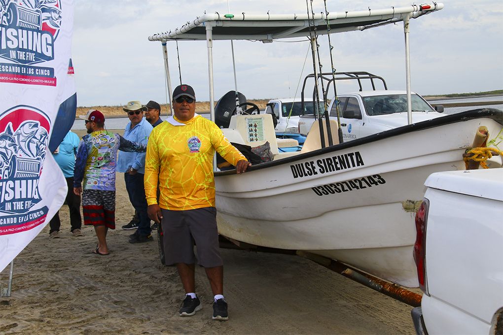 Participating in the starting shot on the API pier were the members of the organizing committee: Leopoldo Torres González, Antonio Aripez Navarro, Abraham Torres Ruelas, and Enrique Soto Madrigal; the Port Captain, Lucio Valenzuela Ruiz; the Port API Director, Fernando Loeza Palomares; on behalf of FONMAR, the Coordinator of Inspection and Monitoring in Comondú, Fernando Romero Romero and the Sub-Coordinator of Tournaments, Erick Enrique De La Vega Meza; the Director of Municipal Tourism, Cristina Murillo Rodriguez; the President of the Cooperative Society “Progreso,” Jesús Salvador Verdugo Ojeda; and the local tourist service provider, Adolfo “Fito” Gonzalez.