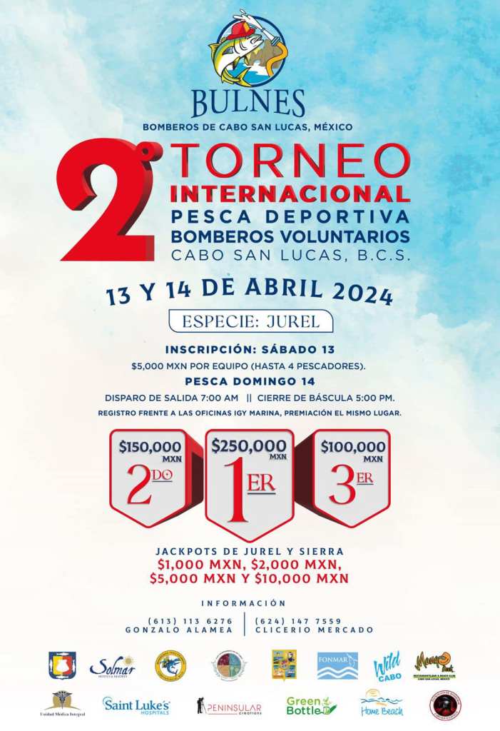 The Second “Bulnes” 2024 International Sport Fishing Tournament to benefit the Cabo San Lucas Fire and Rescue Corps will be held April 13 and 14, 2024.